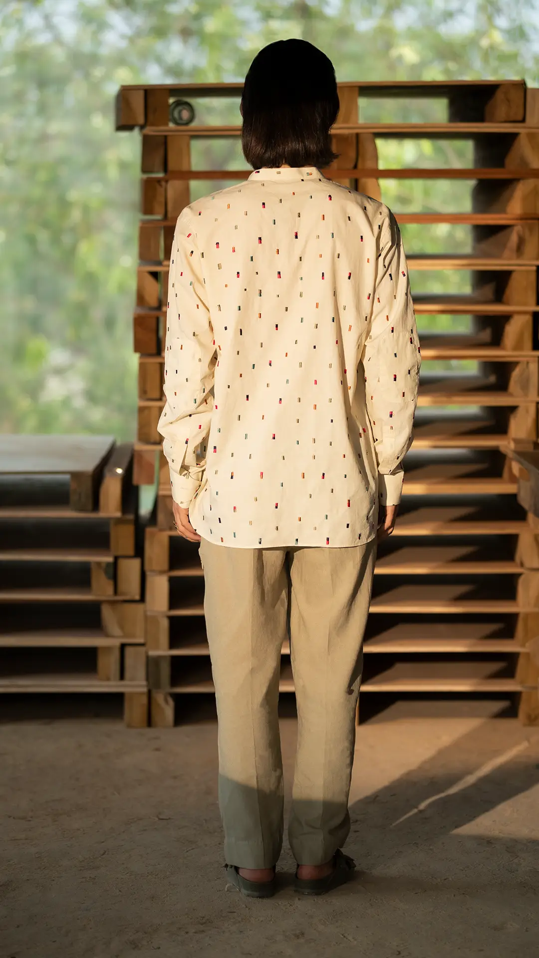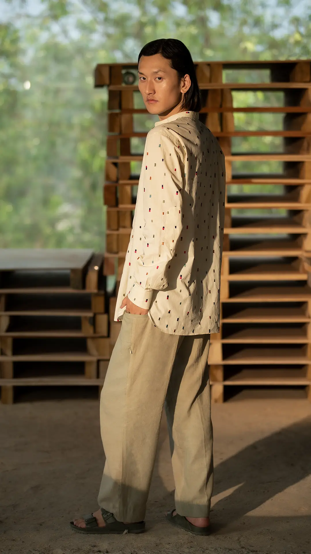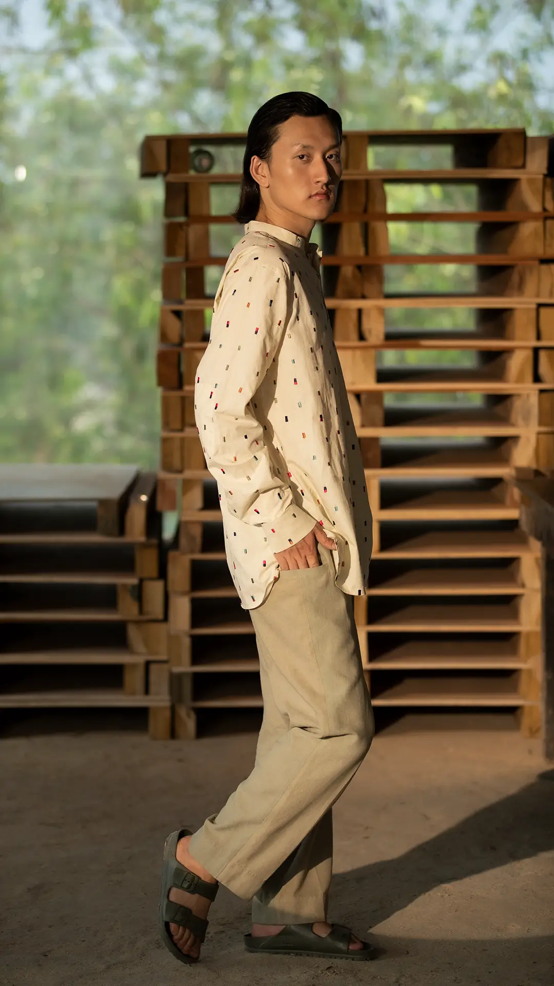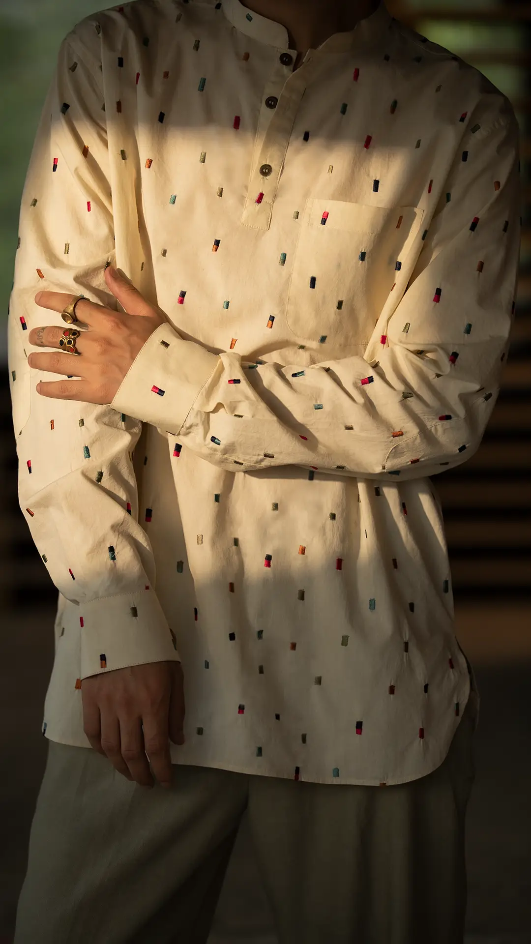 Crafted from high-quality poplin fabric, this short kurta offers a lightweight and breathable feel. The colourful embroidery using silk threads, mandarin collar and half-buttoned placket adds a touch of casual sophistication, allowing you to effortlessly transition from a beachside stroll to a refined evening gathering.