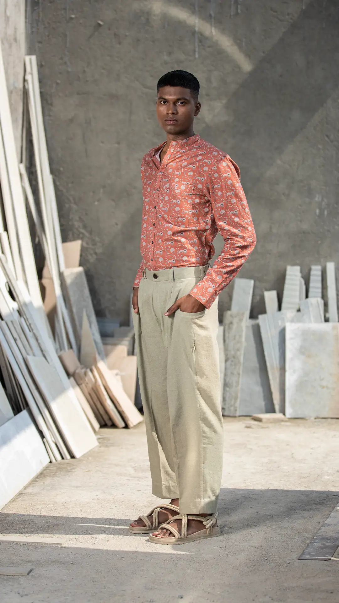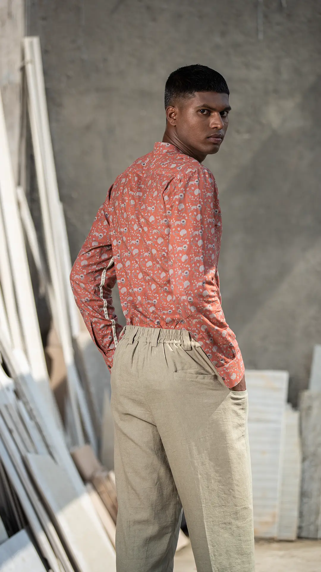 Inspired by the timeless beauty of chinoiserie, this shirt showcases a mesmerising lotus print. The vibrant coral hue adds vibrancy, allowing you to make a bold style statement. Made from khadi, this shirt ensures maximum comfort even in hot climates. To further elevate its exclusivity, it has got our brand tape on one sleeve’s seam.