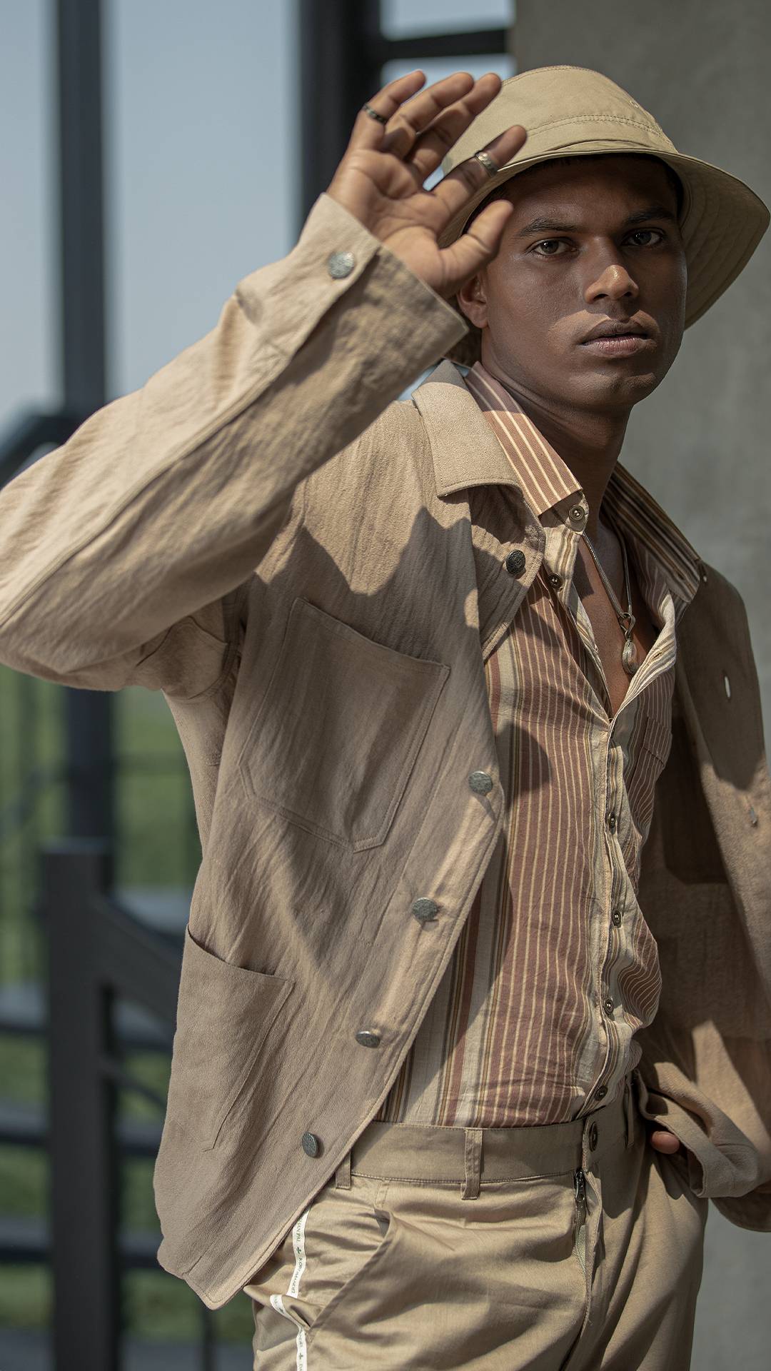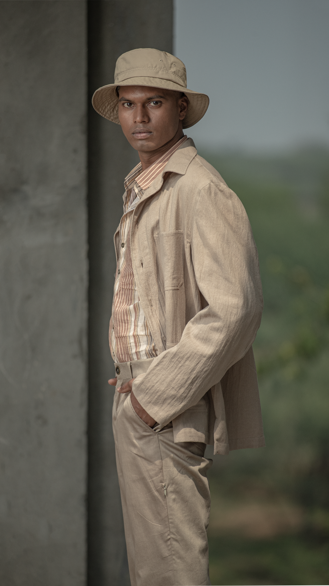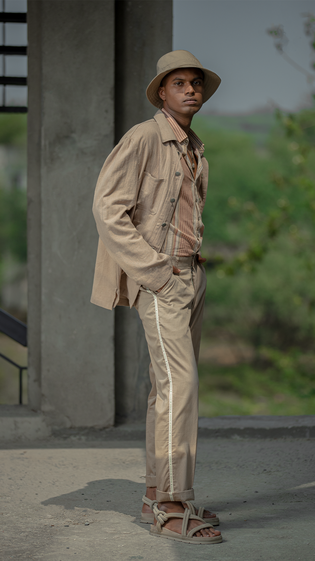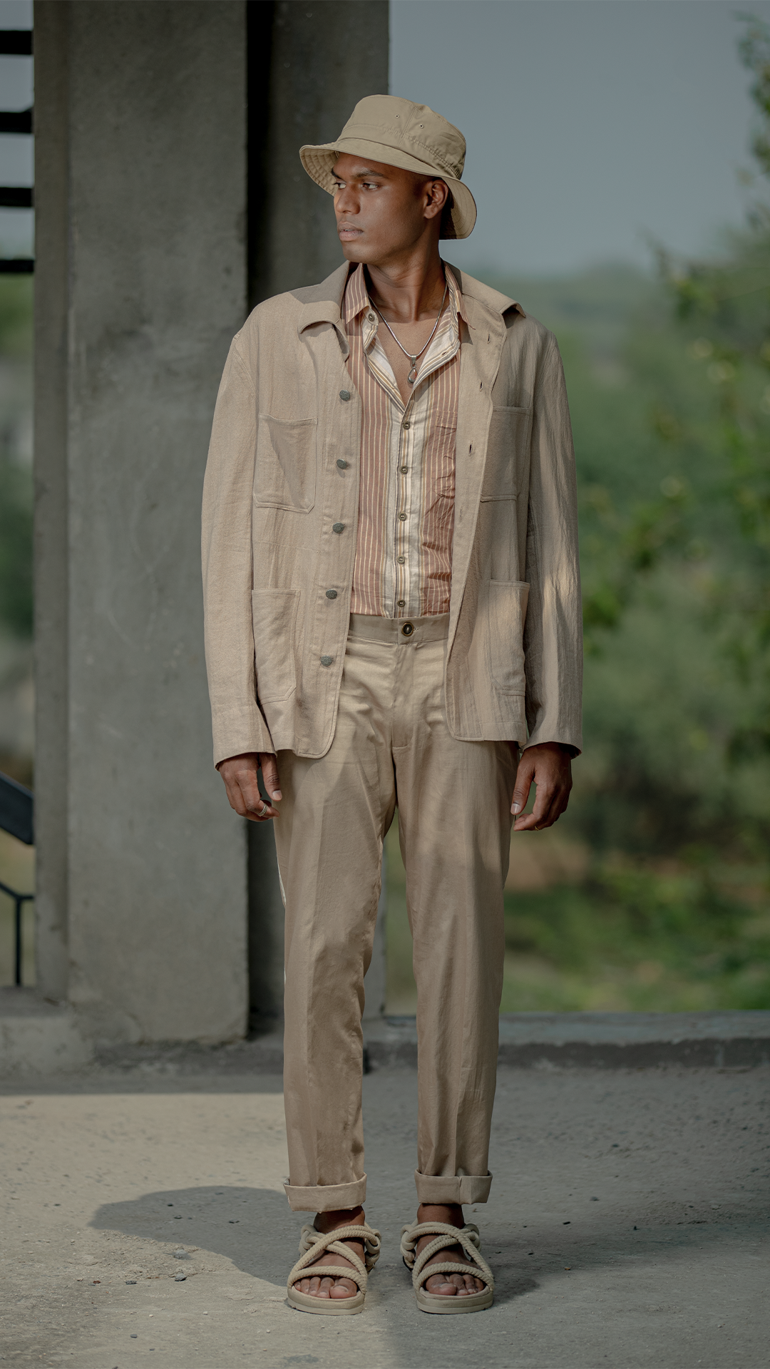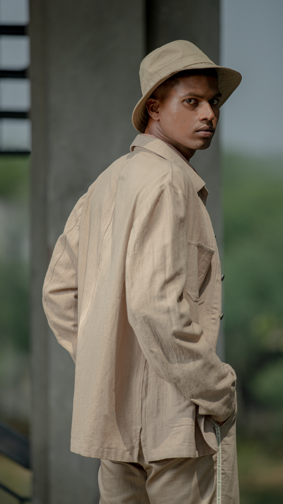 Oversize Textured cotton shacket with vintage inspired buttons, for your resort escapades. And four front pockets making it a quintessential utility piece while travelling.